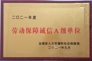 榮獲:勞動(dòng)保障誠(chéng)信A級(jí)單位