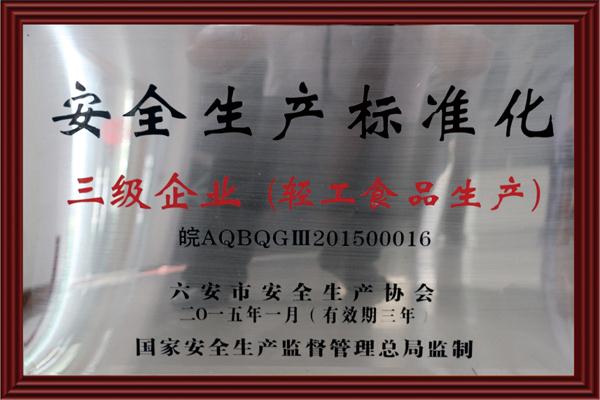 榮獲:安全生產(chǎn)標(biāo)準(zhǔn)化三級(jí)企業(yè)