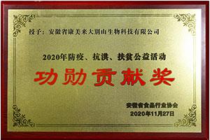 安徽省食品行業(yè)2020年防疫、抗洪、扶貧公益活動(dòng)“功勛貢獻(xiàn)獎(jiǎng)”