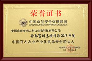 榮獲:2016年度中國(guó)百名農(nóng)業(yè)產(chǎn)業(yè)化食品安全帶頭人余春富