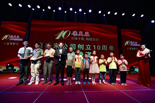 在康美來(lái)公司10周年創(chuàng)業(yè)輝煌晚會(huì)上,余春賦董事長(zhǎng)把110400元現(xiàn)金現(xiàn)場(chǎng)捐助給金寨縣沙河鄉(xiāng)中心小學(xué)、燕子河鎮(zhèn)樹林小學(xué)、青山鎮(zhèn)姜河中心小學(xué)184名貧困學(xué)生,支持政府雨露計(jì)劃。公司自2014年起,發(fā)動(dòng)公司干部和伙伴開展結(jié)對(duì)扶貧助學(xué),奉獻(xiàn)愛(ài)心,回饋社會(huì)。2014年由過(guò)去的117名,增加到184名學(xué)生,由2所小學(xué)增加到3所小學(xué)。扶貧辦主任劉澤祥參加捐助活動(dòng)并講話。