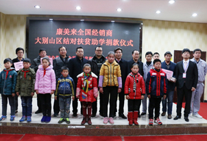 2016年1月6日康美來公司舉行全國經(jīng)銷商大別山區(qū)結(jié)對(duì)扶貧助學(xué)捐款儀式